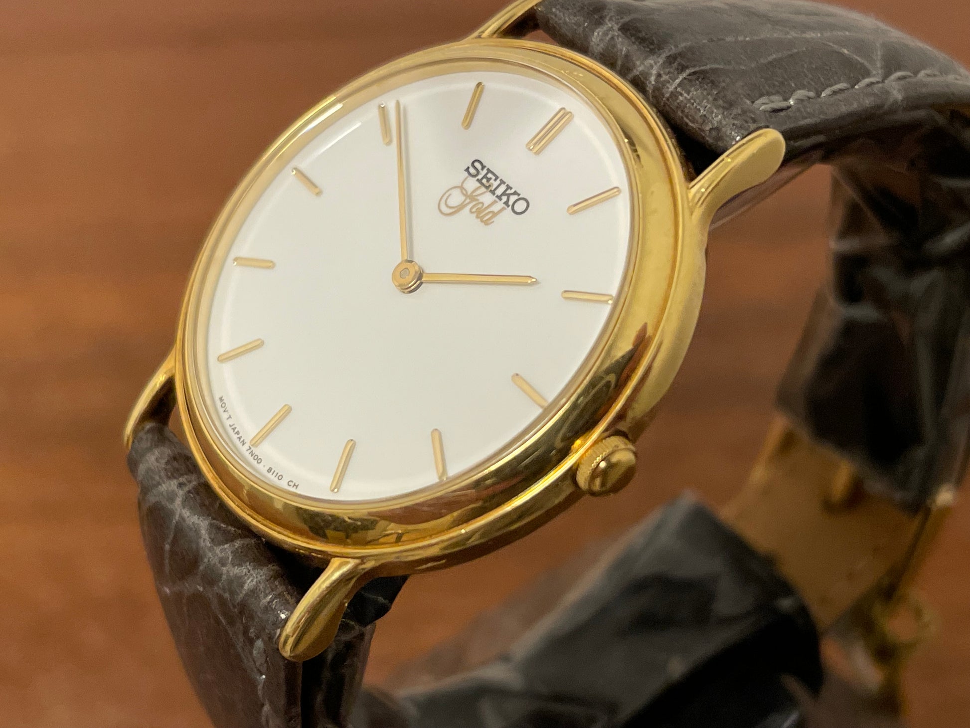 Wrist size: Fitted with an original Seiko 18K gold collection strap (the original strap was replaced due to damage)