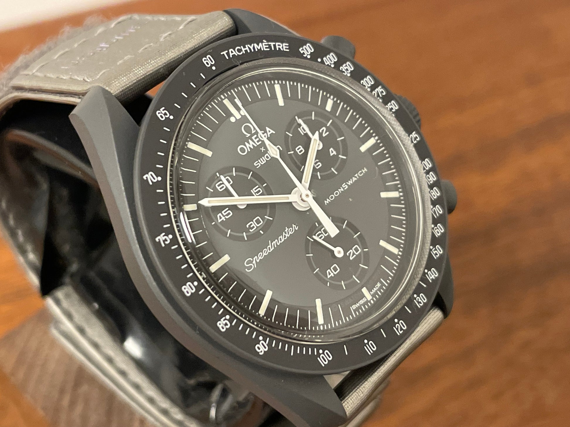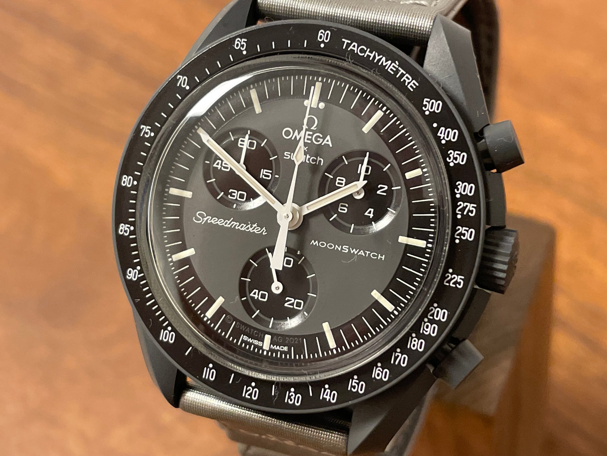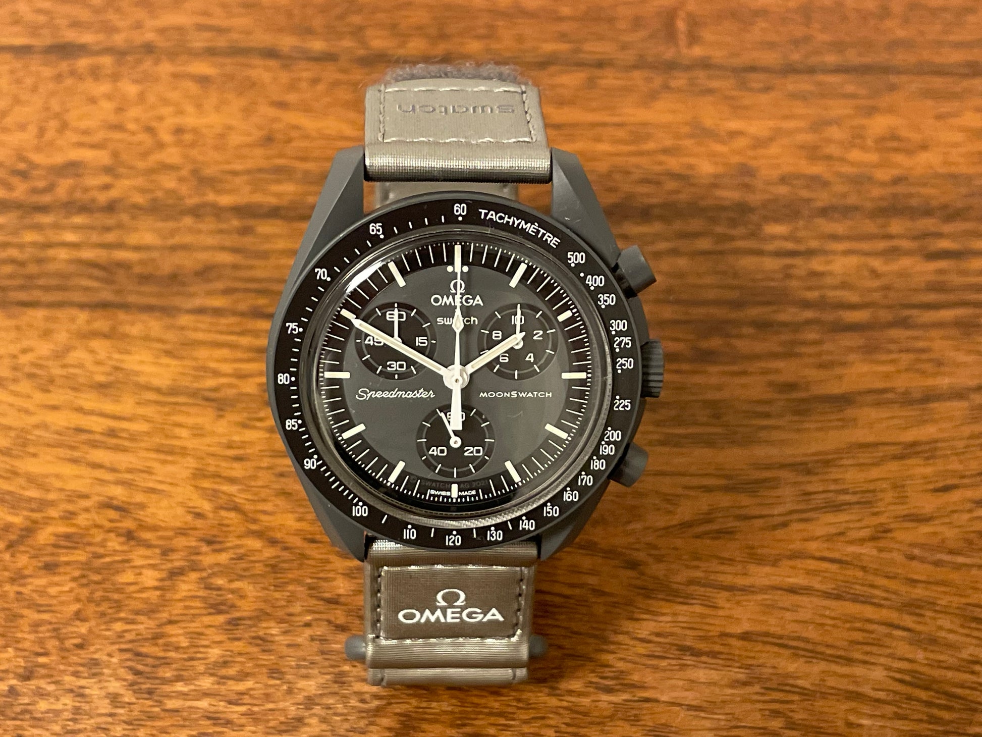 Modern Omega x Swatch watch details